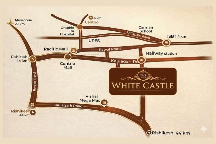 The White Castle is a premium residential project offering elegant 3 BHK and 4 BHK duplex apartments in Engineers Enclave, GMS Road, Dehradun.